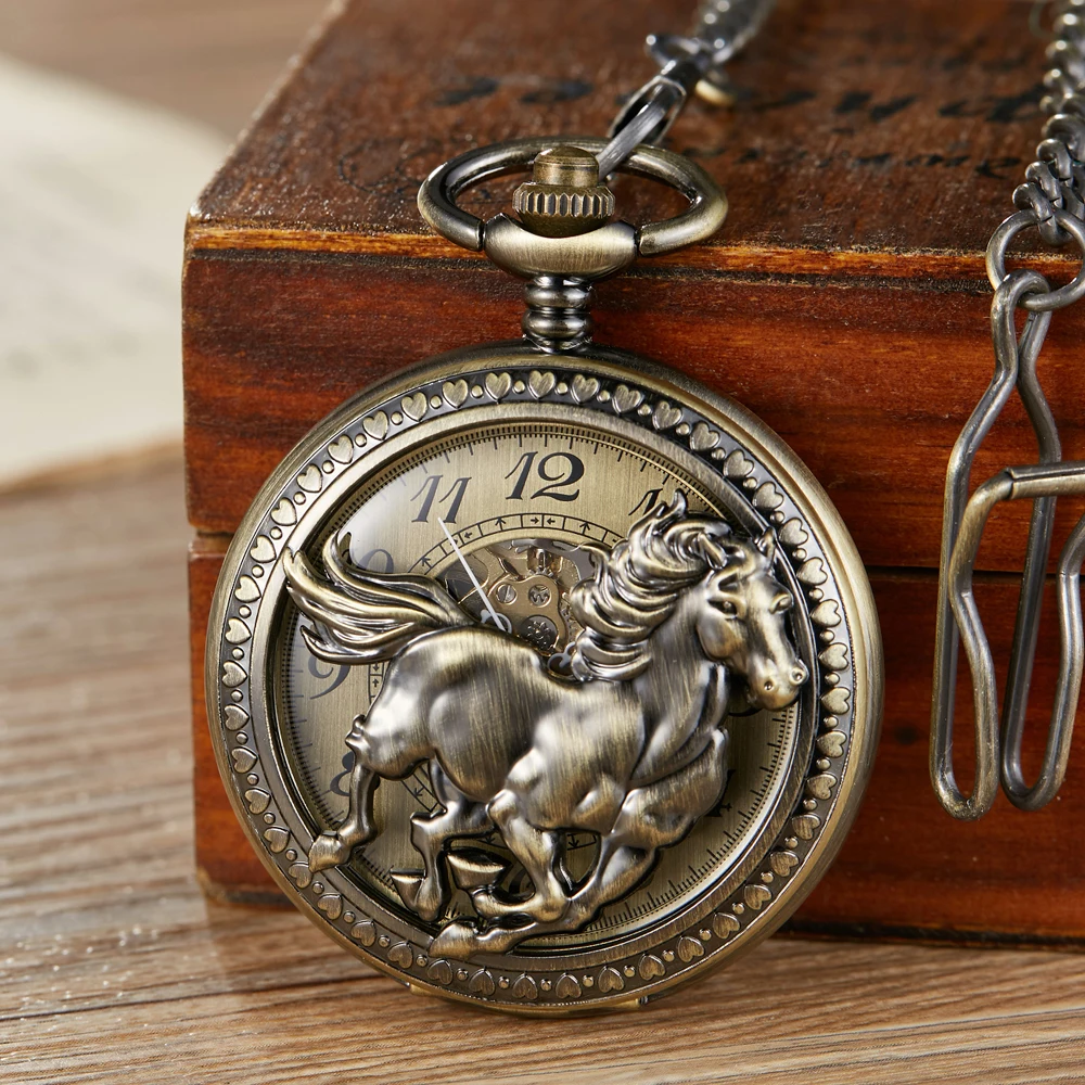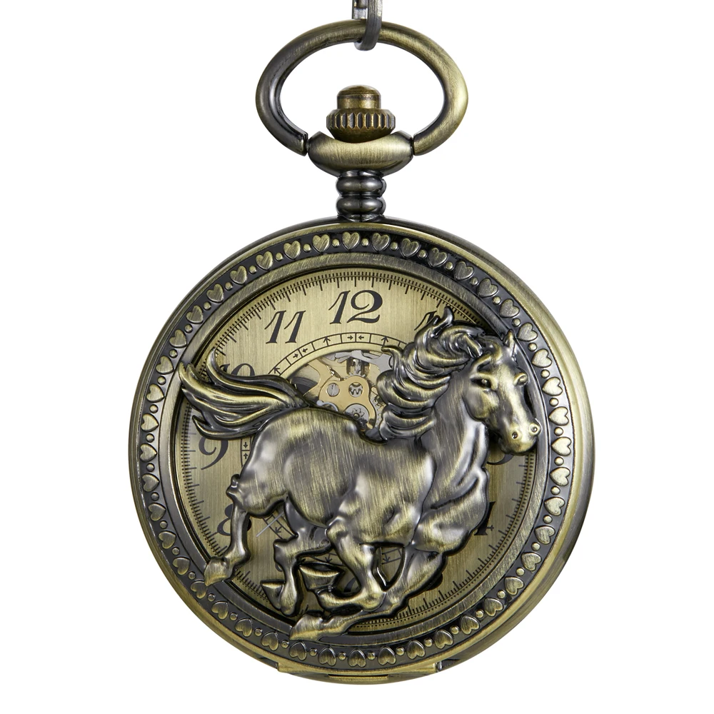 Полые китайского зодиака коричневый дом Скелет Механические карманные часы Брелок Сеть подарок Для мужчин Подарки для женщин Подарки Для женщин Для мужчин