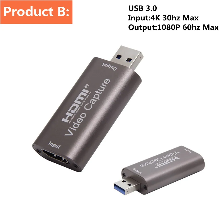 Продукт A: карта захвата K004Характеристики: входной порт: 1 x HDMIФормат входного сигнала HDMI: 480i, 480p, 576i, 576p, 720p50, 720p60, 1080i50, 1080p24 / 25/30/50Выходной порт: 1 x USBФормат вывода: 640x480 / 720x480 / 720x576 / 768x576 / 800x600 / 1024x768 / 1280x720 / 1280x800 / 1280x960 / 1280x1024 / 1368x768 / 1440x900 / 1600x1200 / 1680x1050 / 1920x108 0/1920x1200 / 640x360 / 856x480 / 960x540 / 1024x576Частота кадров: 25/29,97/30/50/59,94/60 кадров в секундуЗапись аудио и видео: стандарт UVC и UACМощность по уровню поверхности: <= 2,5 WРабочая температура: 0-50 градусов ЦельсияТемпература хранения: -20-70 градусов ЦельсияВлажность хранения: 5% -90%Пожалуйста, обратите внимание: 1. Если ваш ноутбук/компьютер не совместим с 1080P, этот захват не может выбрать 1080P; Таким образом, 1080P нужен ваш ноутбук/компьютер с поддержкой 1080P, тогда он может работать.Упаковочный лист: HDMI-USB карта видеозахвата * 1
