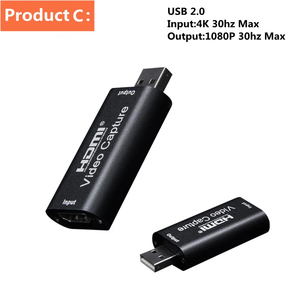 Карта видеозахвата USB 3,0 2,0, карта захвата игр 1080P, HDMI-совместимый адаптер для потокового видео для прямых трансляций, видеозапись