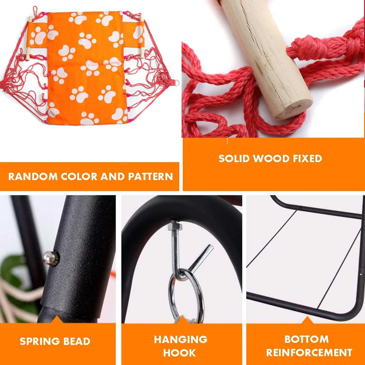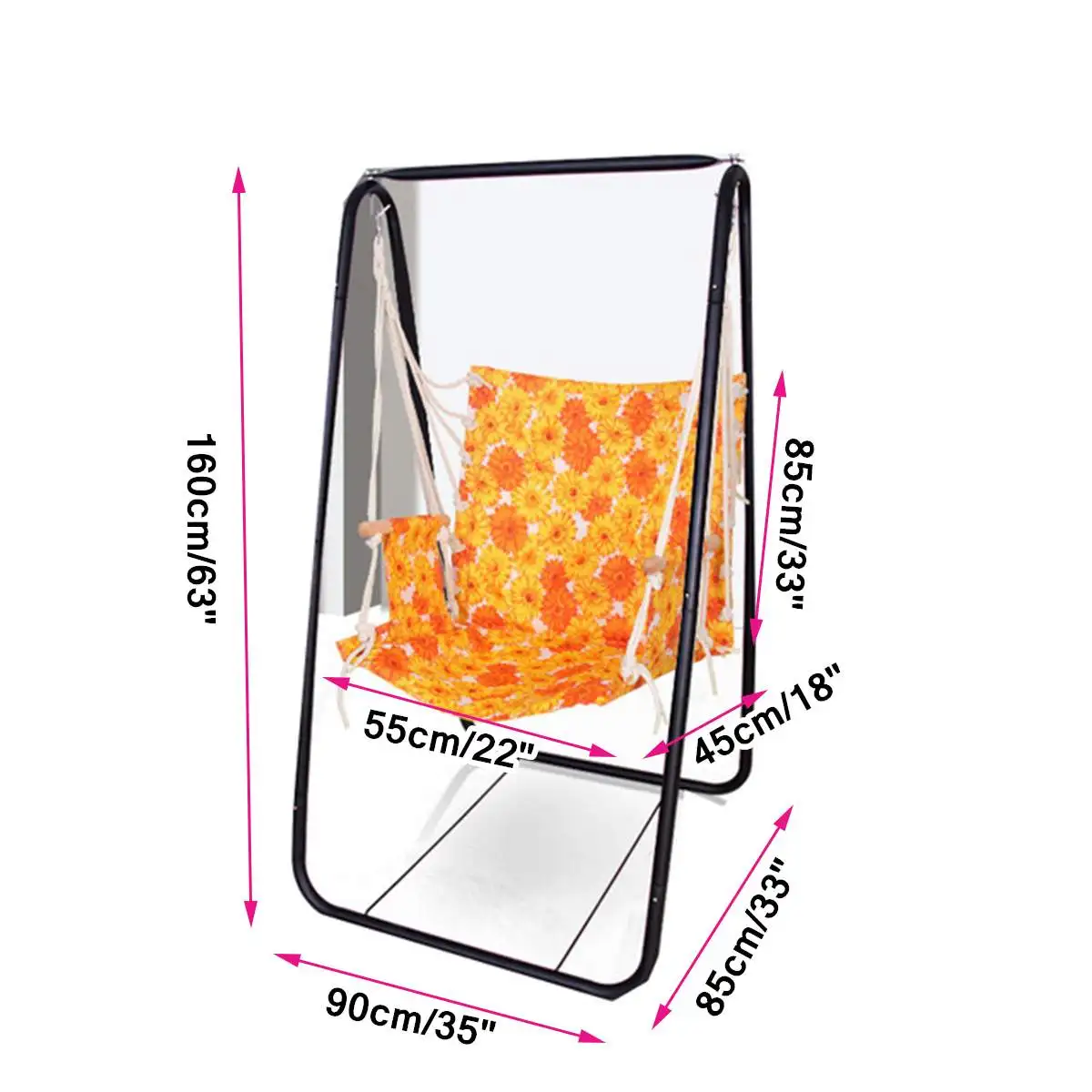 〖ОсобенностиМатериал: железная стойка, Оксфордский гамак 520DЦвет стойки: черныйЦвет и узор гамака: случайныйНесущая способность: 80 кгШирина сиденья: 55 см/22 дюйма (приблизительно)Размер стойки: (Д) x (Ш) x (в) 90x85x160 см/35x33x63 дюйма (приблизительно)