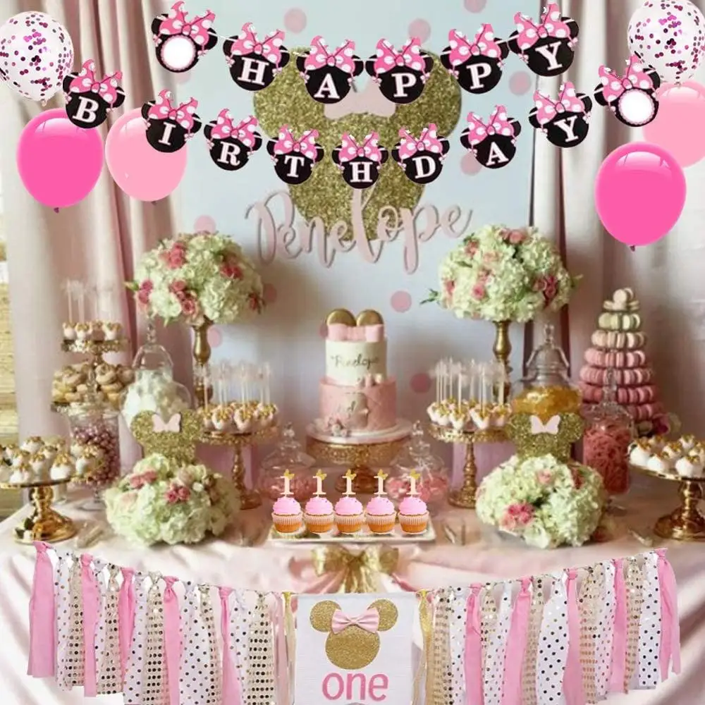 Тема Диснея Минни Мауса Для вечевечерние НКИ маленькая девочка на 1-й день рождения, товары для вечеринки сделай сам, Декор, топпер для торта, аксессуары для дня рождения