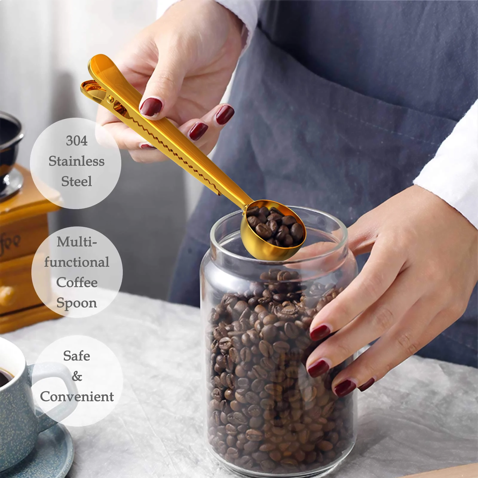 Кофейная ложка с длинной ручкой и зажимом, для кухонных принадлежностей, для сухого молока, жидких приправ, мерные ложки с хорошей герметичностью, посуда для кофе