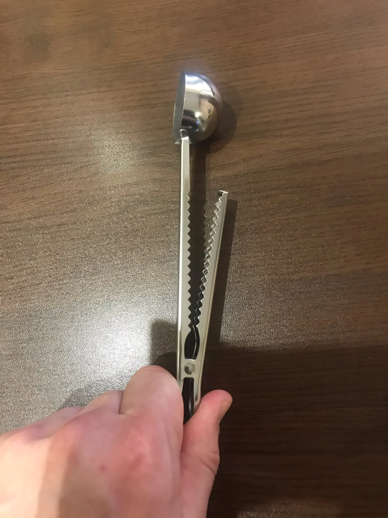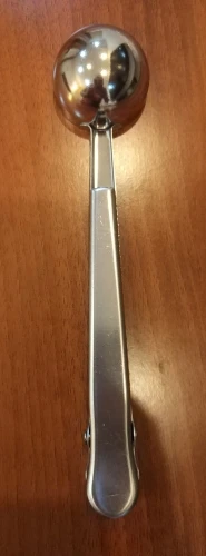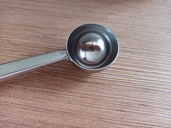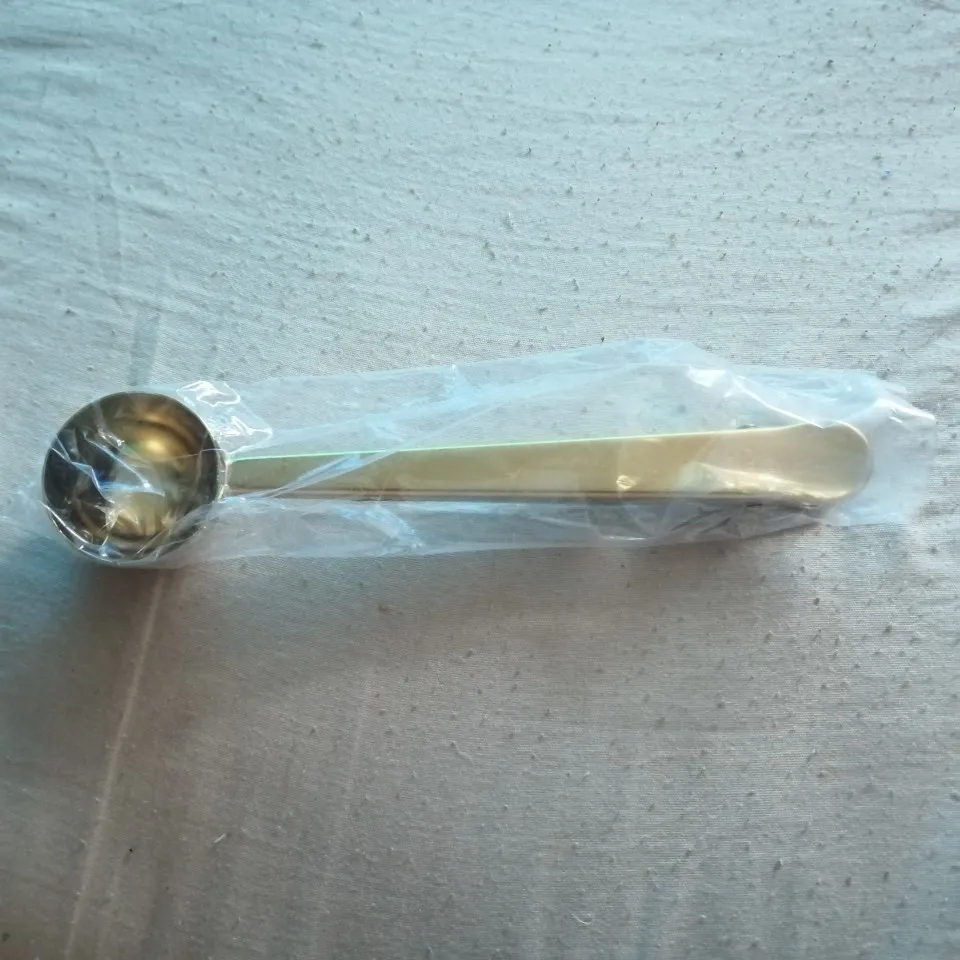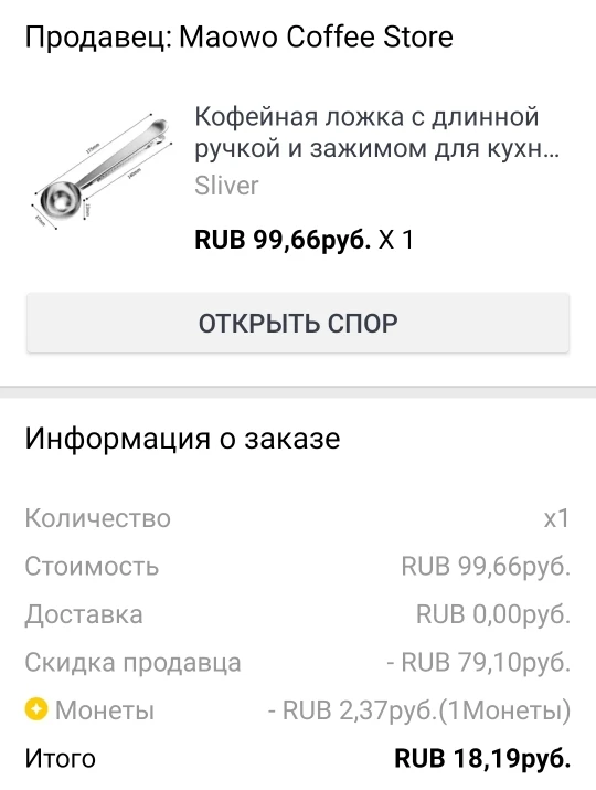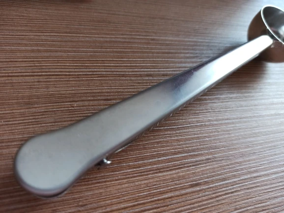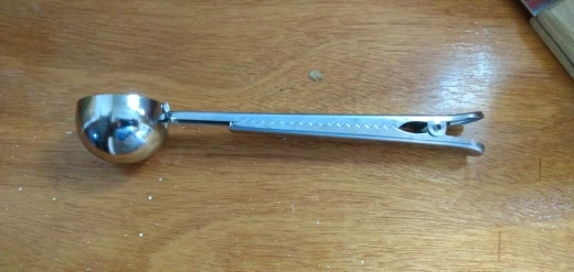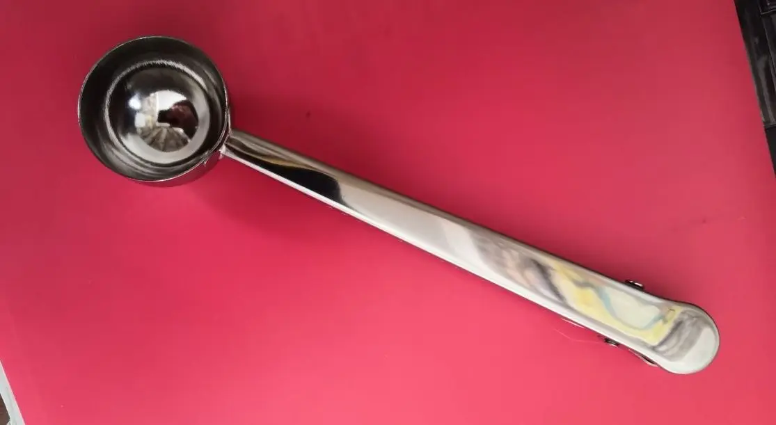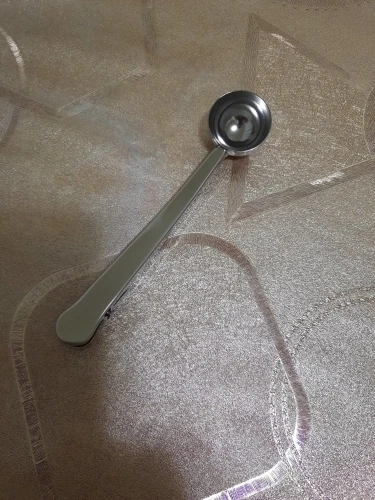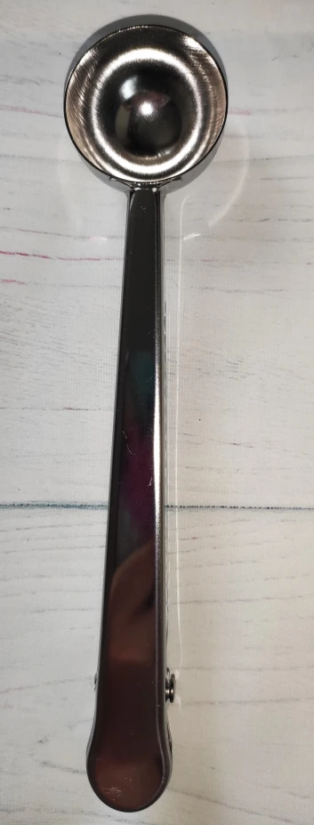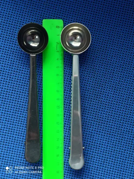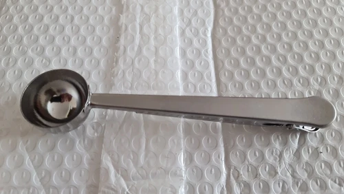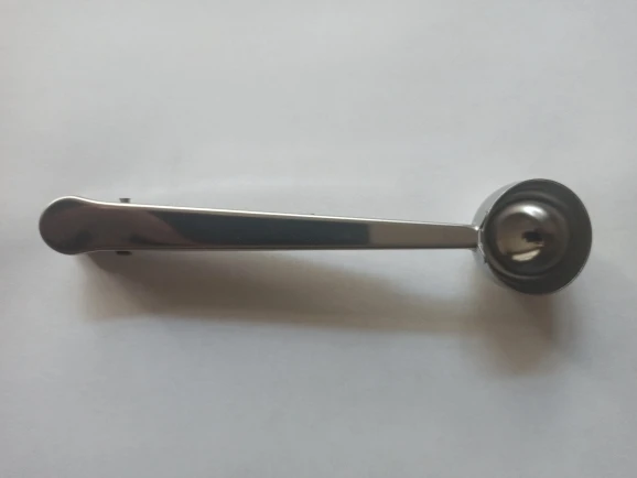 товар полностью соответствует описанию. Ложка хорошего качества. зажим тугой, В полную ложку (без горки) помещается 5,8 грамм кофе, 17 грамм сахара. Вес самой ложки 37 грамм. Достаточно быстрая отправка. Доставка до Москвы 1,5 месяца