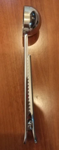Благодарю продавца. Всё на высшем уровне упаковка, доставка. Качественный гаджет (ложка-зажим), в неё как раз помещается две чайные ложки кофе, очень понравилась, оказалась не заменимая вещь. Взяла 3шт., одну подарила маме, пользуется. К покупке рекомендую.