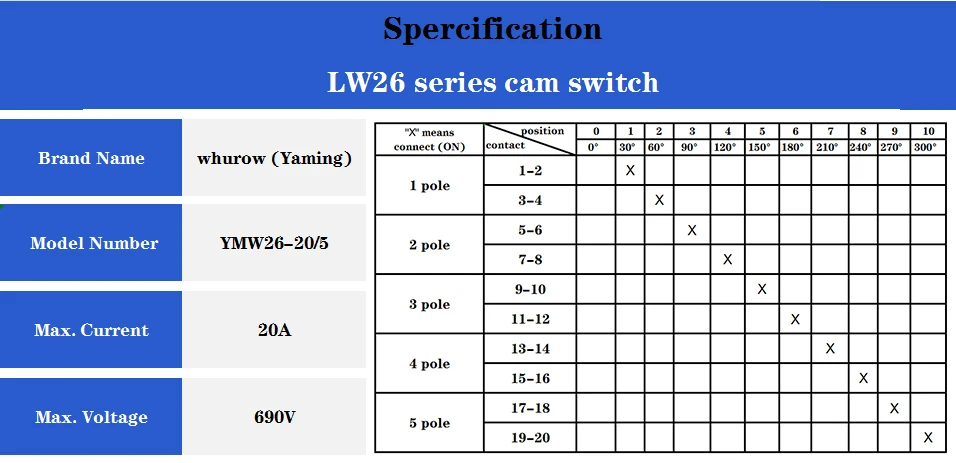 Универсальный Кулачковый переключатель, 20A, 10P, LW26, LW28, YMW26...