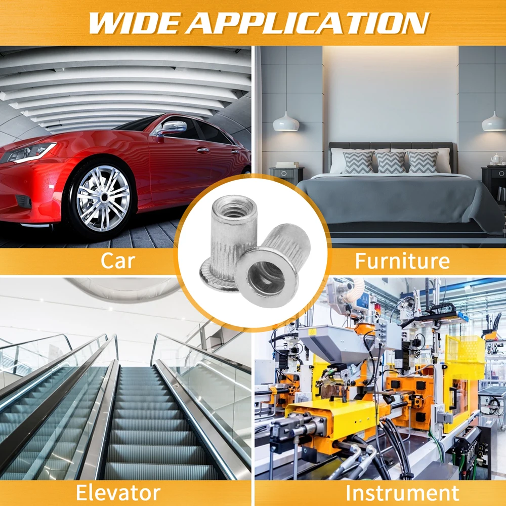 4. Различные применимые материалы, заклепочные гайки могут быть установлены в различных материалах, включая сталь, пластик и стекловолокно.