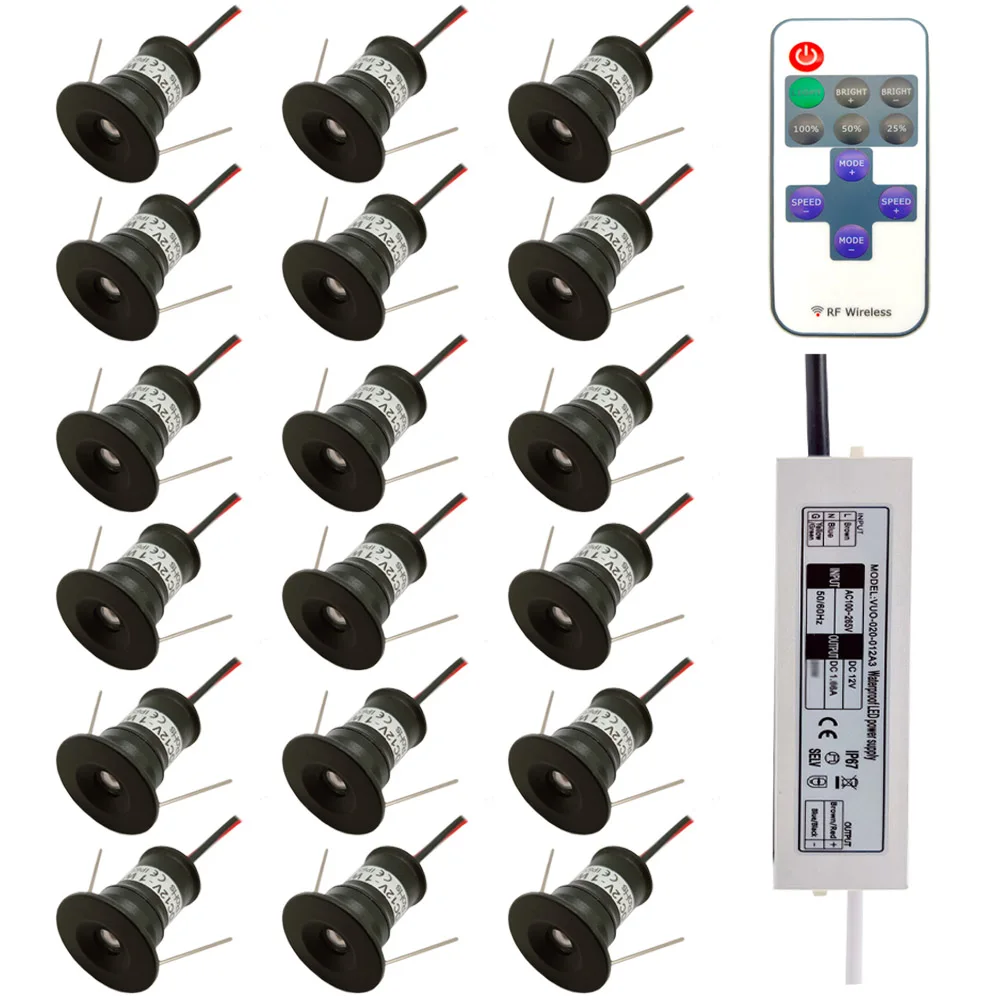 1. Материал: алюминий2. Размер лампы: диаметр 20 мм, высота 25 мм, размер отверстия для резки: 15 мм3. Вход: 100-260 В для драйвера (12 В для лампы)4. Реальный Ватт: 1 Вт для одной лампы5. Люмен: 95 лм для одной лампы6. Цвет корпуса: серебристый, черный, белый7. Светлый цвет: теплый белый/натуральный белый/холодный белый/красный/синий/зеленый/RGB8. Параметры контроллера управления: RF Control ler (может управлять лампой через стену или потолок)9. Расстояние управления: 5-10 м10. Питание для контроллера: 1 шт. 3 В литиевая батарея-CR2025 (не входит в комплект, пожалуйста, приобретайте в местном магазине.)