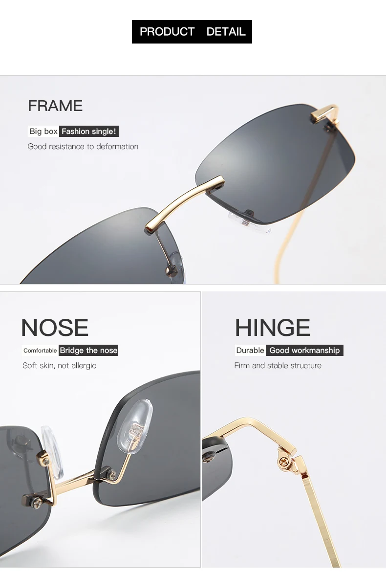 Солнцезащитные очки унисекс, без оправы, в металлической квадратной оправе, с защитой Uv400