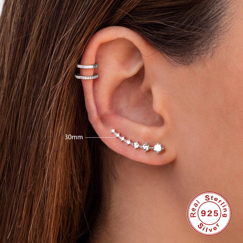 Aide 925 стерлингового серебра изящный кубического циркония Пирсинг Серьга альпиниста длинная линия с ушками кроулер гоночный автомобиль для рок серьги-гвоздики для женщин ювелирные изделия