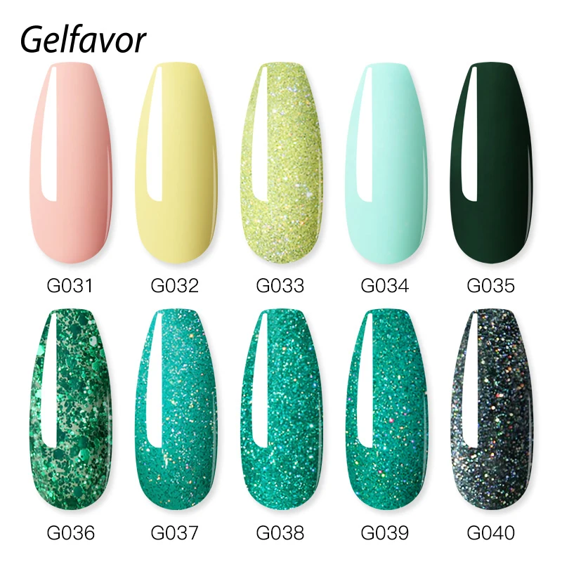 Набор гель-лаков Gelfavor, основа и верхнее покрытие для лак для ногтей, 10 шт., гибридные Лаки, УФ светодиодный лампа