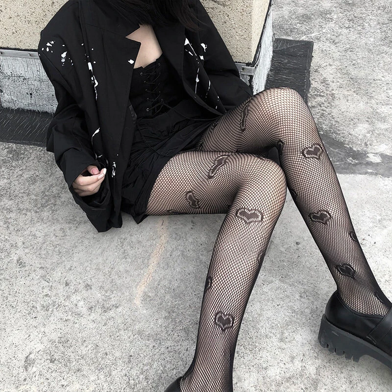 Черные ажурные сексуальные женские ажурные колготки с узором в виде сердца, сетчатые колготки Nylons Medias, трендовая тонкая одежда для ночного клуба, Чулочные изделия