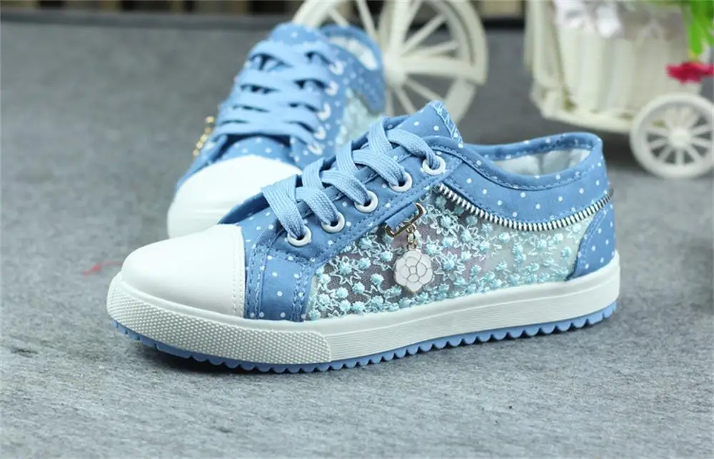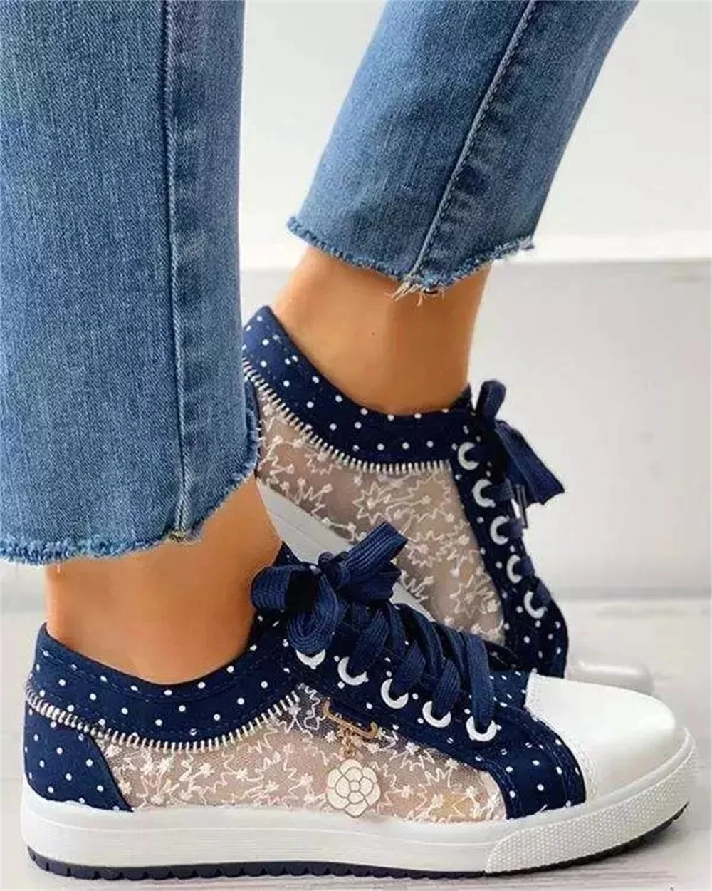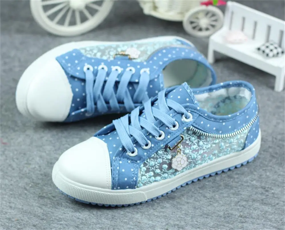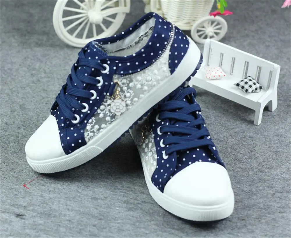 Женские кроссовки в горошек, Повседневные Дышащие туфли на плоской подошве, с цветочным узором и вышивкой, 35-40, весна 2021