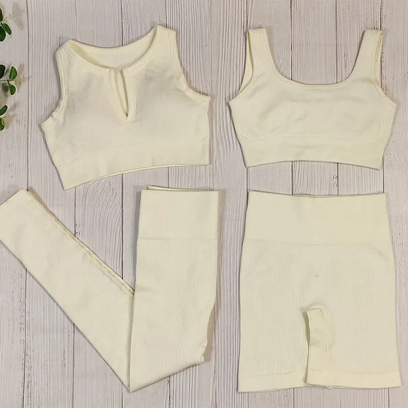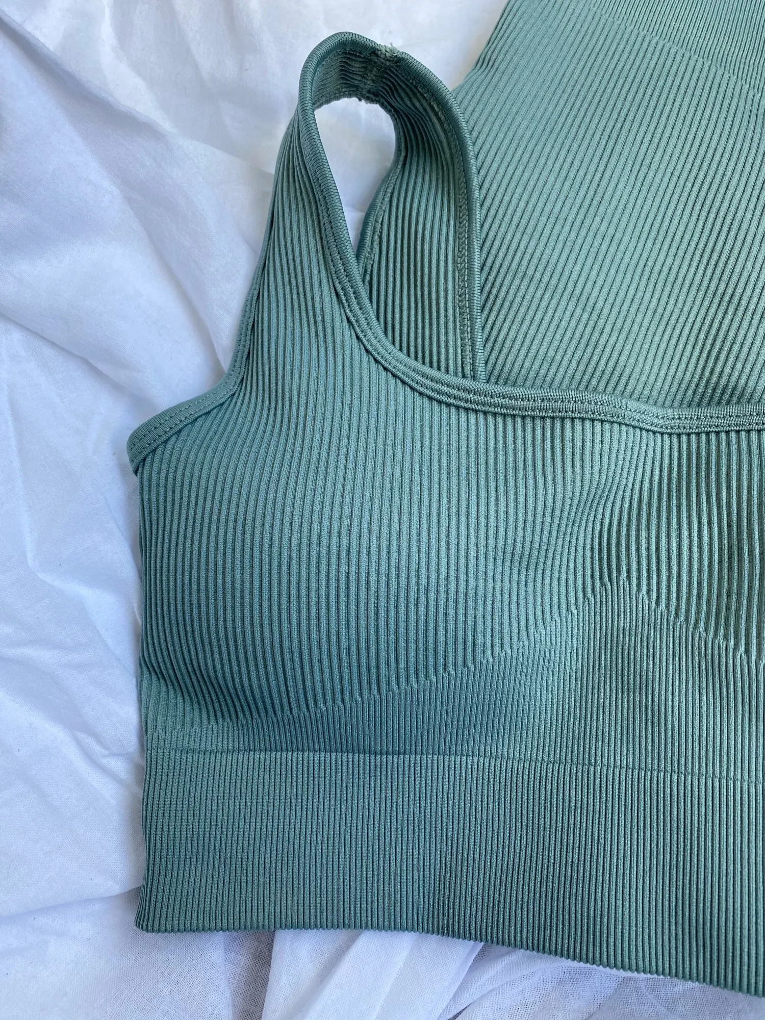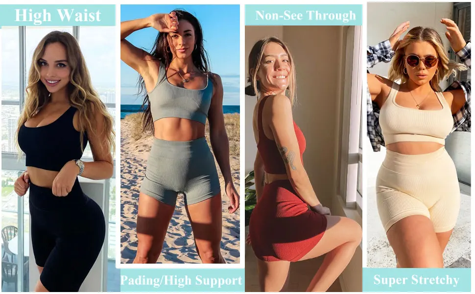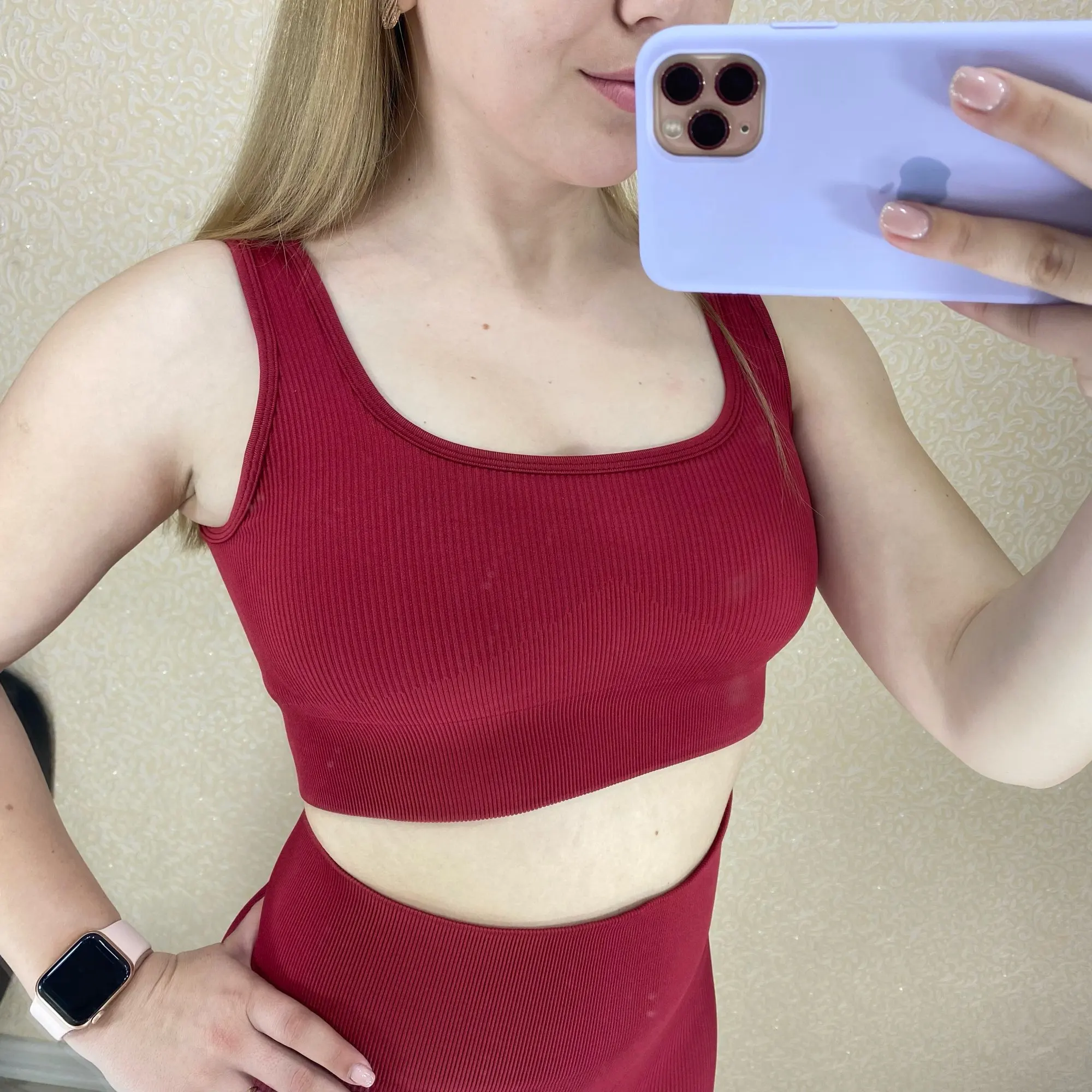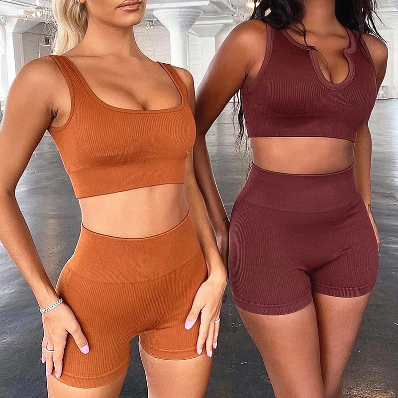 Костюм спортивный женский для фитнеса, бесшовный укороченный топ и шорты, в рубчик