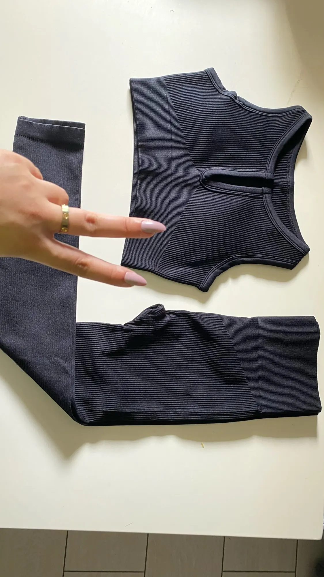 Эй!!! Я получил этот черный набор achi beauuu Я взял его в размере S (мне нравится, что он плотный) Это черный с линиями, это делает вас размером оф! Я измеряю 1,59 см (я маленький) Он слишком гибкий, не тугой и не ощущает неудобств. Там я буду носить его, чтобы тренироваться в комнате, но также, чтобы выйти, это слишком сексуально. Они также дали мне маленький подарок, милый эластичный для волос. Доставка была очень быстрой (10 дней и аккуратной) Я рекомендую это вам! Если у вас есть сомнения, не стесняйтесь писать мне!❤️ ️ ️ ️