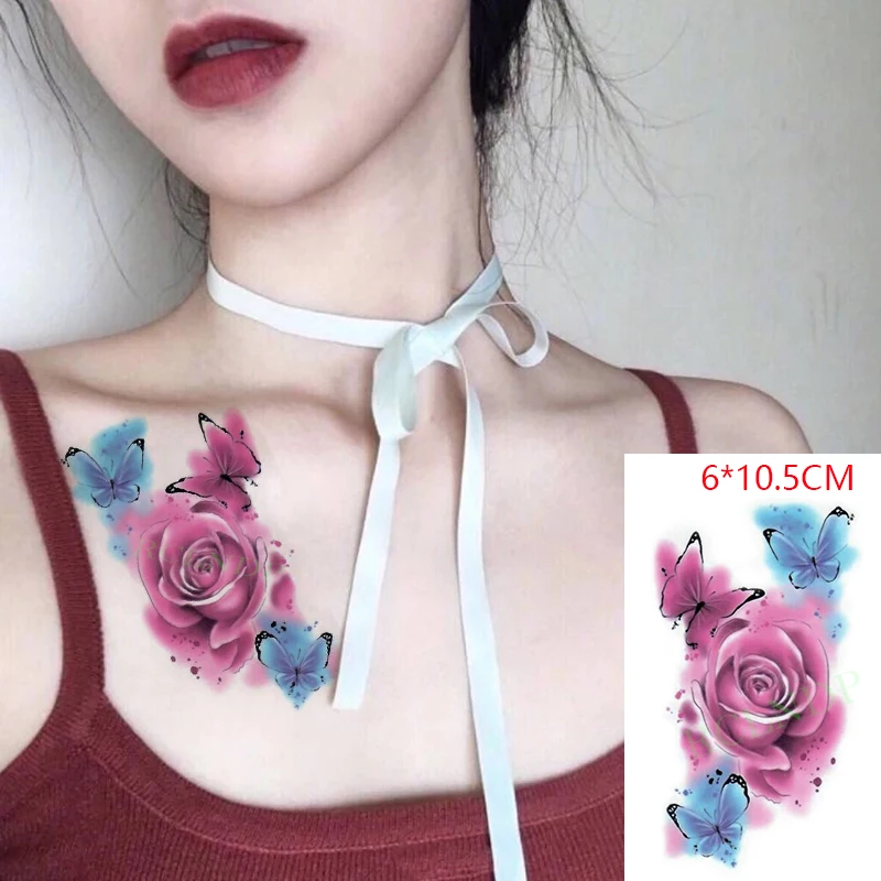 Водостойкая Временная тату-наклейка ins розовая бабочка цветная Сексуальная боди-арт флэш-тату искусственная тату для женщин и мужчин