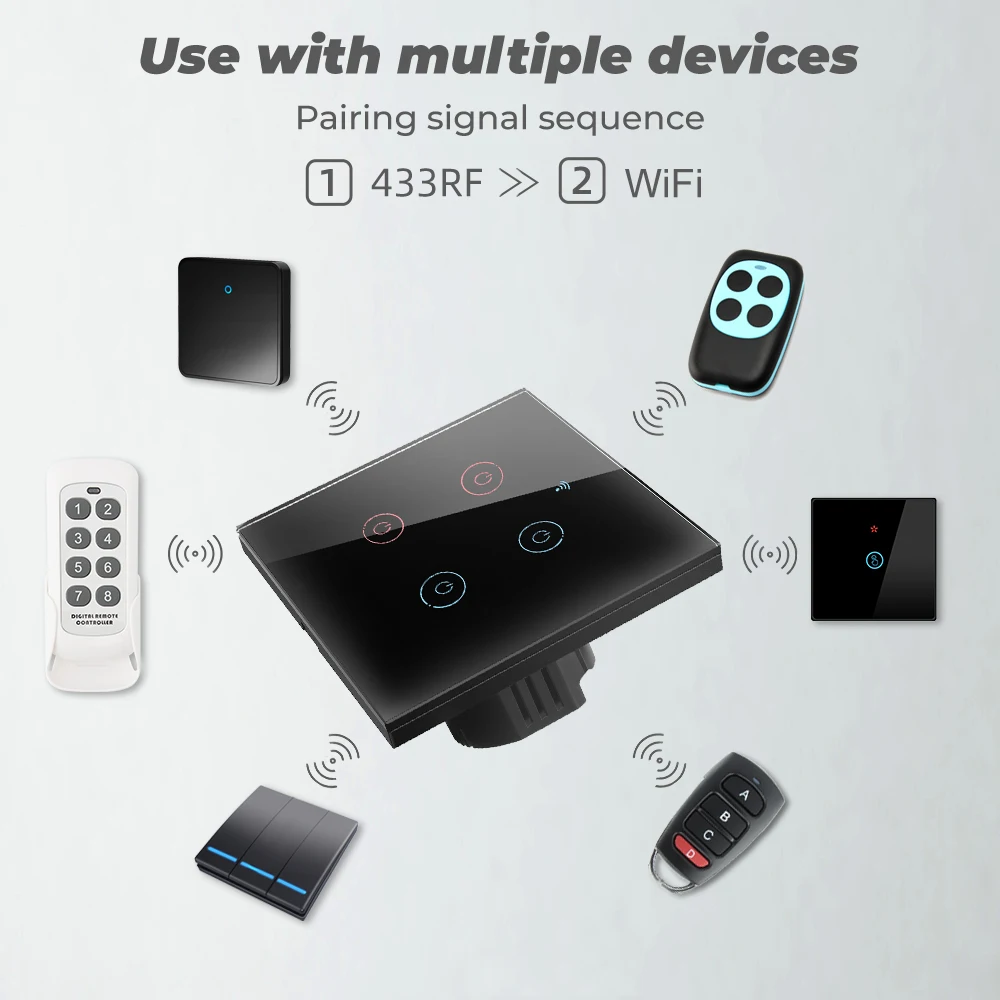1. Конструкция реле (есть реле внутри, которое является более стабильным, более длительный срок службы и более стабильным, чем переключатели на рынке). Обычный тиристорный переключатель управления легко выгорает, высококачественное реле, анти-импульсное напряжение, анти-молния. 2. Функция RF433, но функция 433 МГц-это получение сигналов вместо отправки сигналов. Не может использоваться с другими продуктами приема сигнала, только с беспроводным переключателем или пультом дистанционного управления. 3. Различные режимы переключения могут различать Различные огни С низким уровнем светильник индикатор не будет мешать семейного отдыха, и в темное время суток легко найти и не будет ослепительно. 4. [способ подключения]: нейтральный огонь + один огонь универсальный дизайн, любая семья может использовать (с или без нейтрального провода) 5. Используются только высококлассные хрустальные панели из закаленного стекла. Хороший светильник, чистый цвет, насыщенный цвет, красивый и гладкий, с учетом дневных и ночных эффектов, длительный срок службы и не влияет на использование. 6. Есть таймер/Управление сценой 7. Совместное управление с семьей 8. Используйте с Amazon Echo и Google Home Tmall Genie Использование с несколькими устройствами 433RF + WiFi больше вариантов