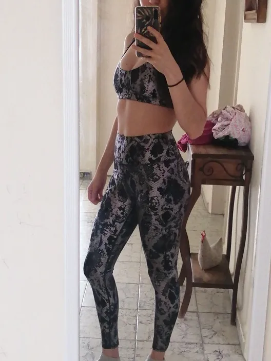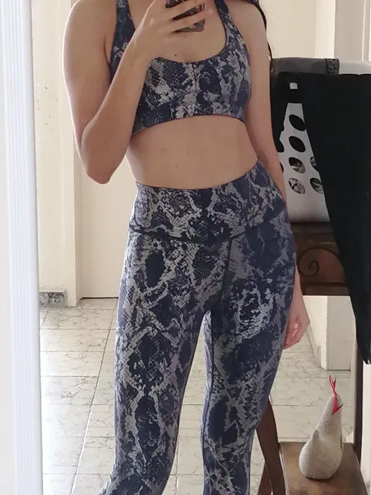 Отличный набор! Толстая ткань, не будучи теплая, Хорошая компрессия, и они не падают при упражнении, спортивный бюстгальтер имеет отличную поддержку для тренировок. Я рекомендую это! Мне 1,68 и я вешу 55 кг и Размер S подходит мне очень хорошо.