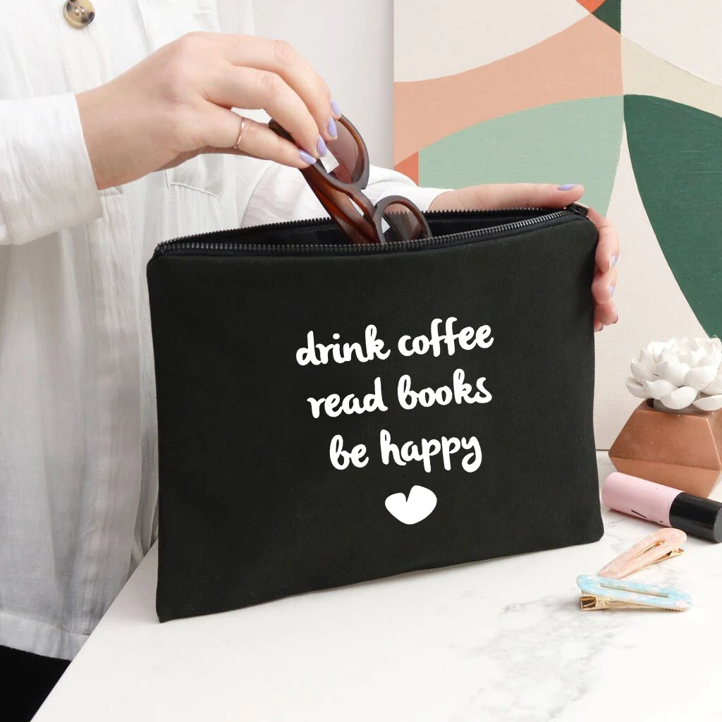 Все, что мне нужно, это кофе и тушь для ресниц, модная холщовая косметичка, губная помада, косметичка, органайзер, дорожные сумки, пенал, мама, жизнь, подарок
