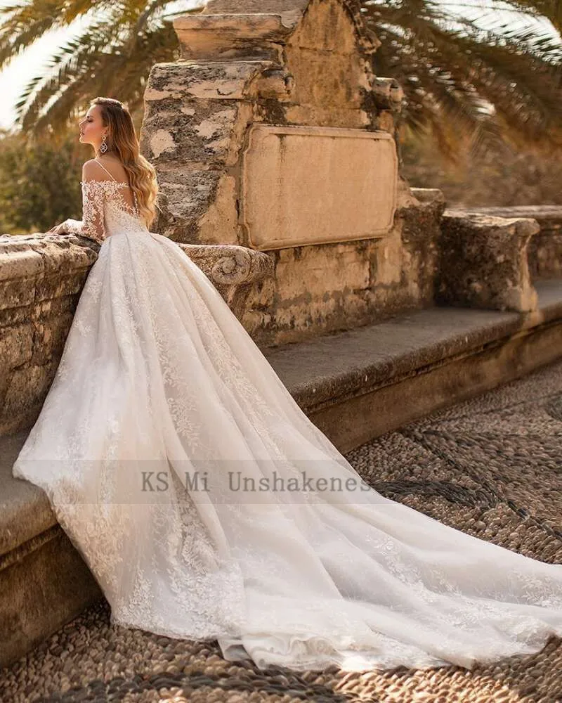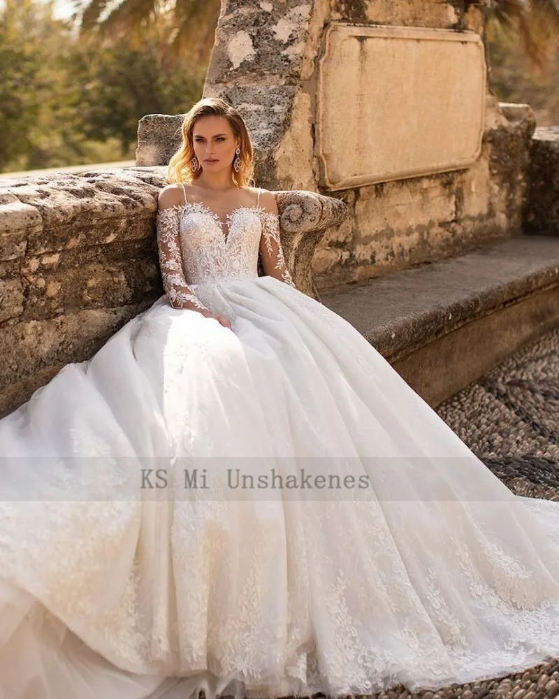 Бальное платье для церкви, свадебные платья, кружевное платье невесты с длинным рукавом, винтажные Свадебные платья на бретелях 2021