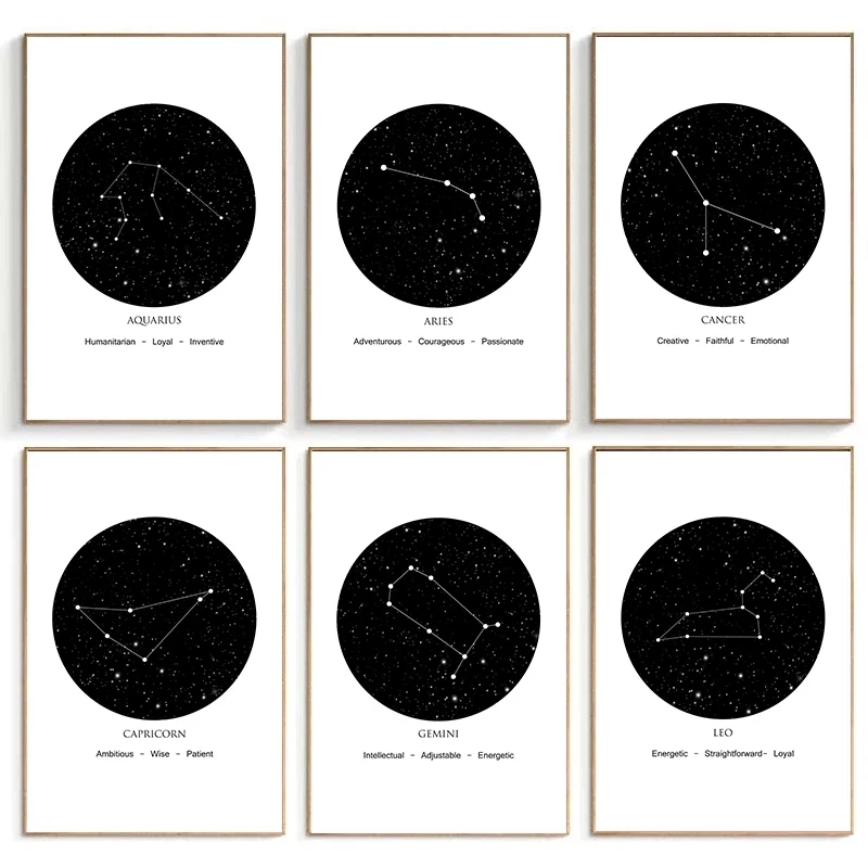 Созвездие Wall Art Холст Картина Печать плакатов Астрология Знак минималистском картина геометрической формы Nordic украшение для дома в виде картины DIY