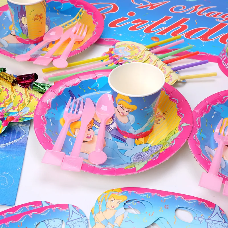 Дисней Золушка тема вечерние столовые приборы девушки день рождения вечерние украшения Скатерть бумажный стаканчик, тарелка вечерние Детские принадлежности для душа