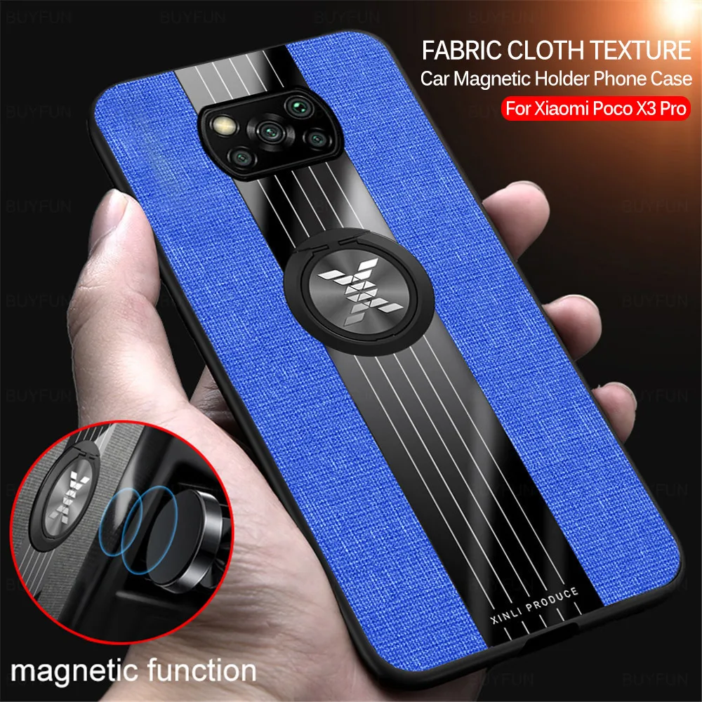 Чехол с кольцом-держателем для Xiaomi Poco X3 Pro, тканевый Жесткий...