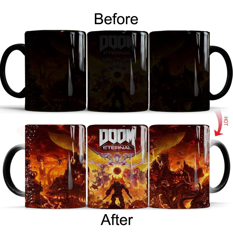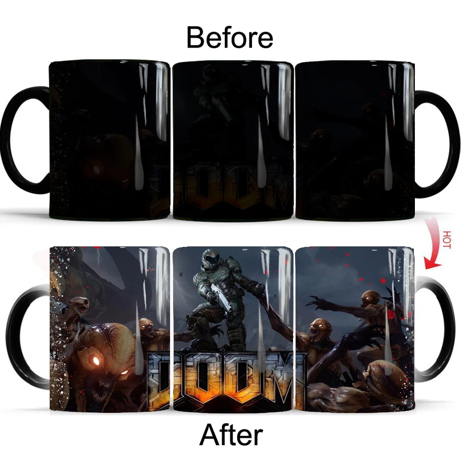 Волшебная кофейная кружка Doom, 350 мл, керамические кружки для изменения цвета, чашка, керамическая чашка для чая, молока, подарок