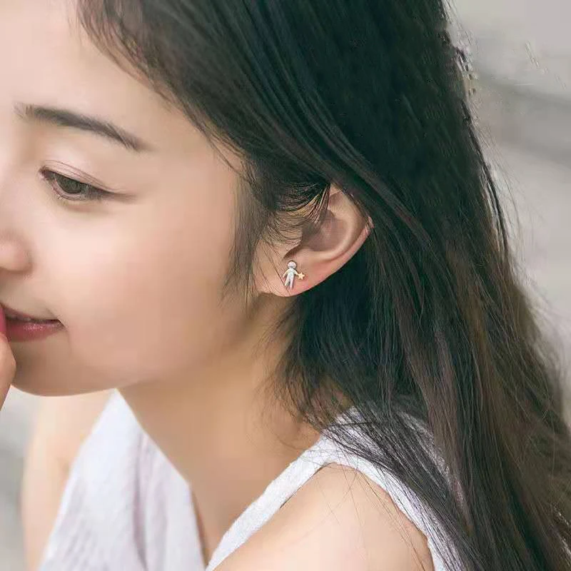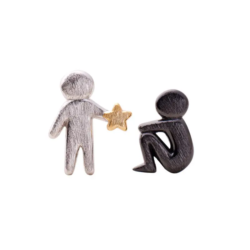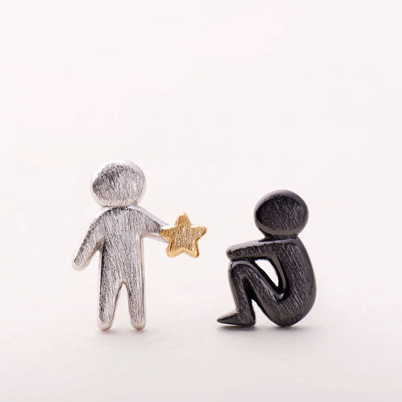 Karopel комплектации с золотыми звездами для вас дизайн серьги-гвоздики S925 серебряные асимметричные серьги с человеческой фигурой для женщин элегантные текстурные украшения