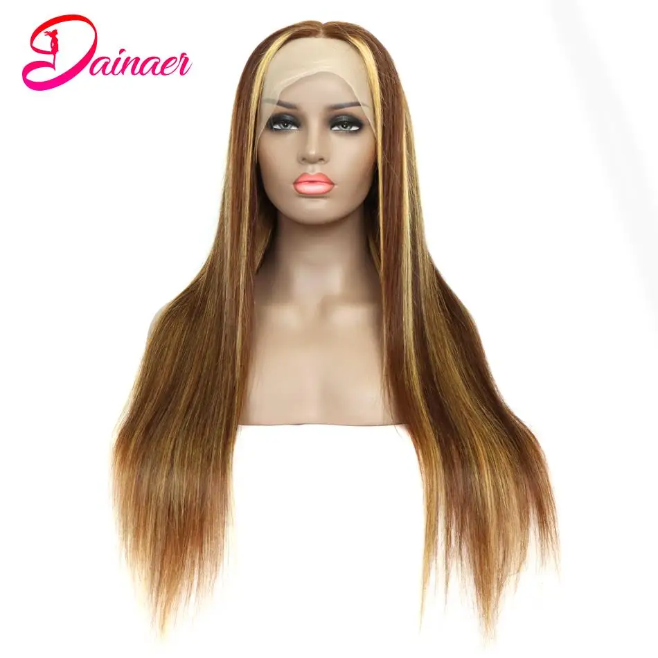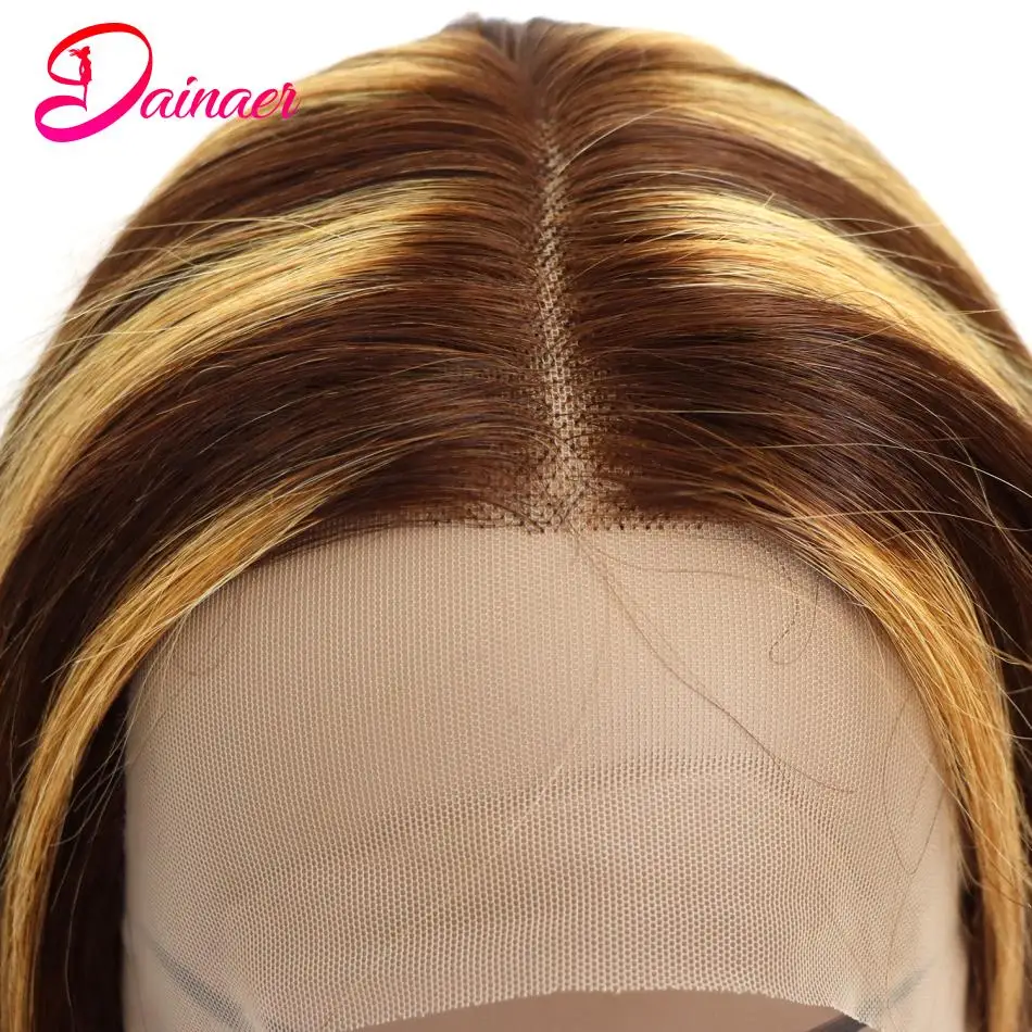 Перуанские прямые волосы на сетке спереди парики 4 27 хайлайтеров цветные волосы парики без клея девственные хайлайтеры Омбре волосы для черных женщин