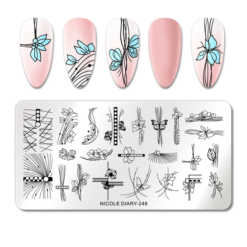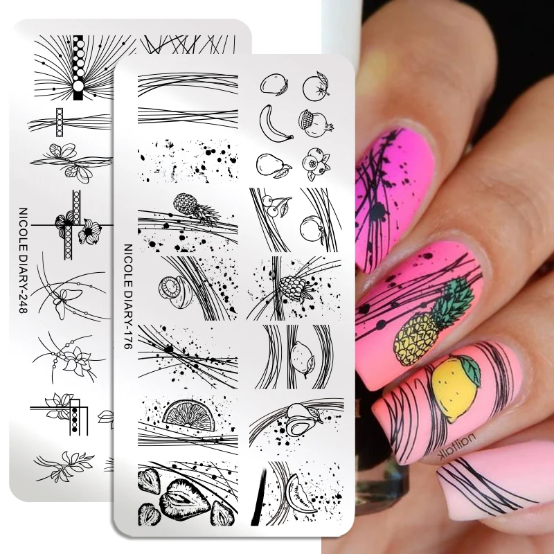 Трафареты NICOLE DIARY для стемпинга ногтей Летний стиль фрукты дизайн штамп шаблоны Геометрическая линия цветок лист изображение печать трафарет