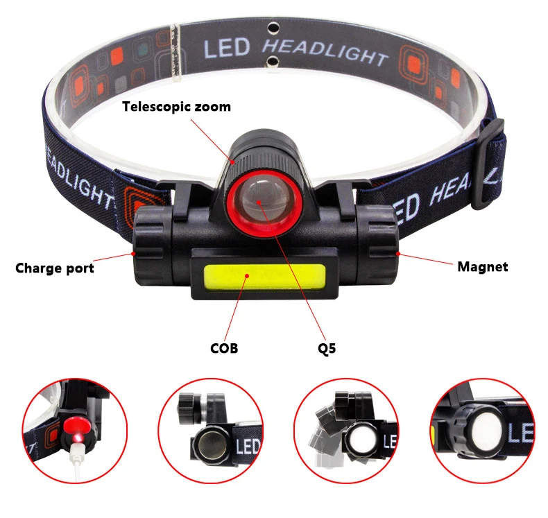 Feature 5USB Rechargeable 18650 Headlight