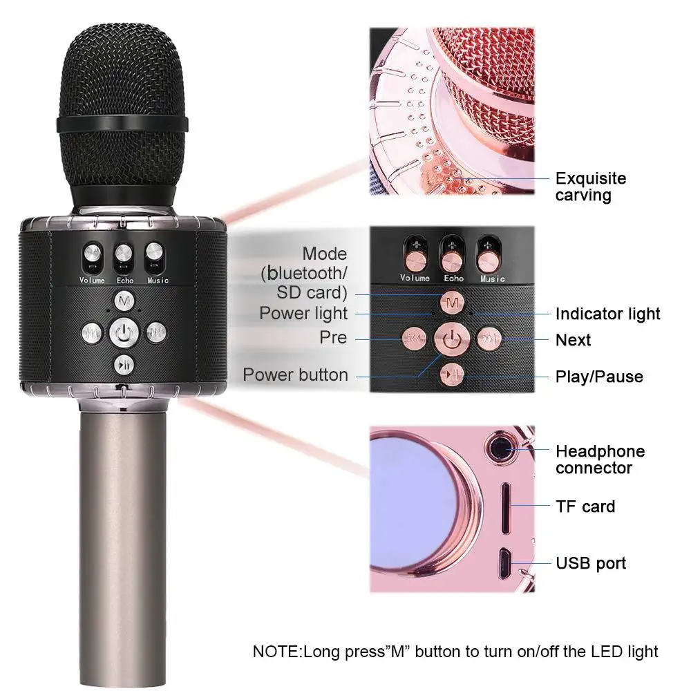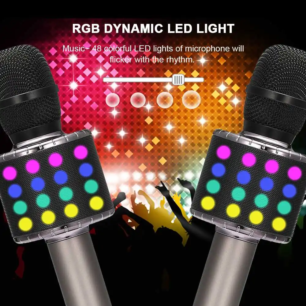 Портативный беспроводной Bluetooth-микрофон, динамик, профессиональный Красочный светодиодный микрофон, караоке, музыкальный проигрыватель, микрофон для пения, KTV Вечерние