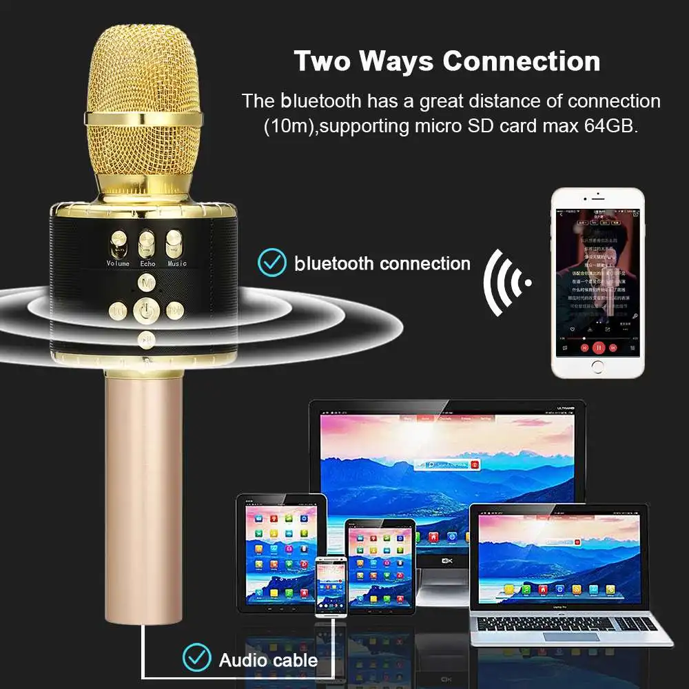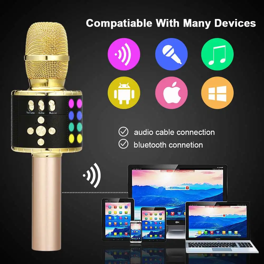 Беспроводной микрофон для караоке с поддержкой bluetooth для студийной съемки с изображением цветной светодиодный свет, 4 в 1 Портативный ручной дома вечерние караоке Динамик машина подарок на День Благодарения для Android/телефон облицовка площадка/коврик/настил/Накладка/ПК