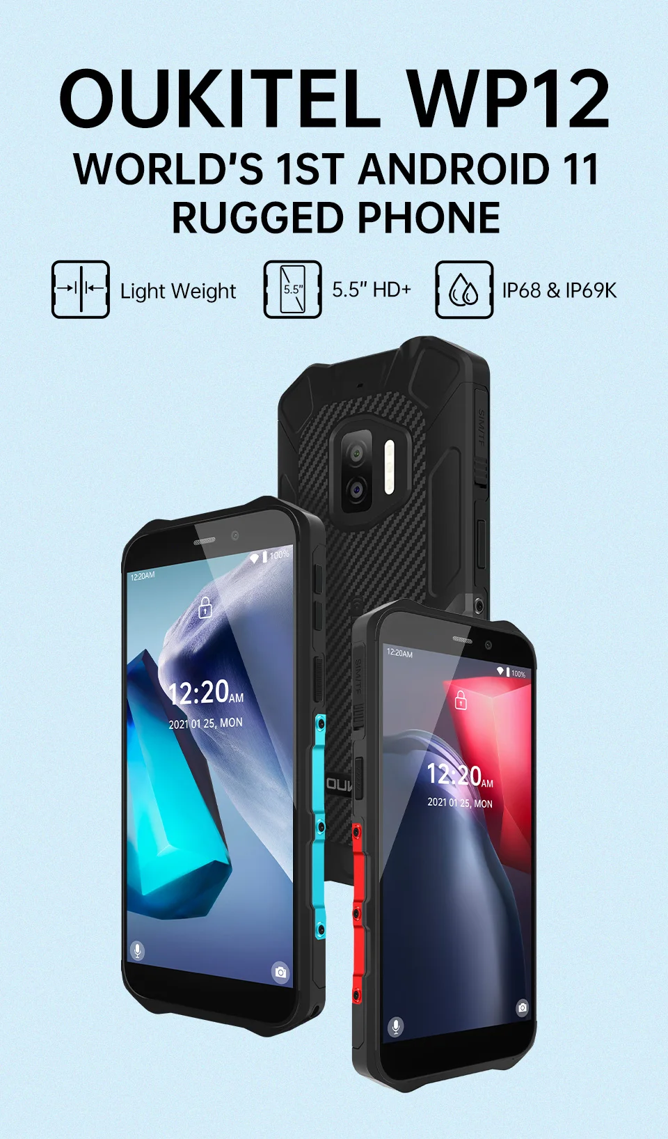 Прочный Смартфон Oukitel WP12 IP68/69K, 4 Гб + 32 ГБ, 4000 мАч, четырехъядерный, Android 11 мобильный телефон, 5,5 дюйма, HD + 500 Вт/1300 Вт, камера 13 МП