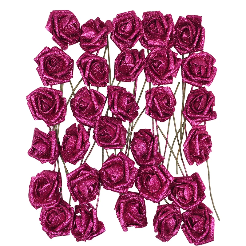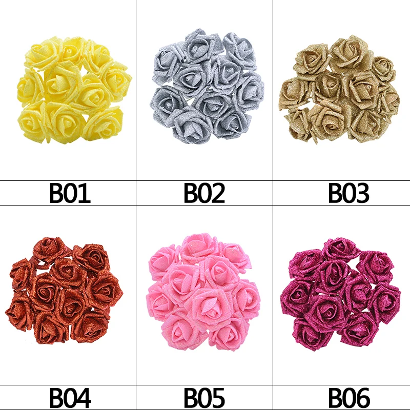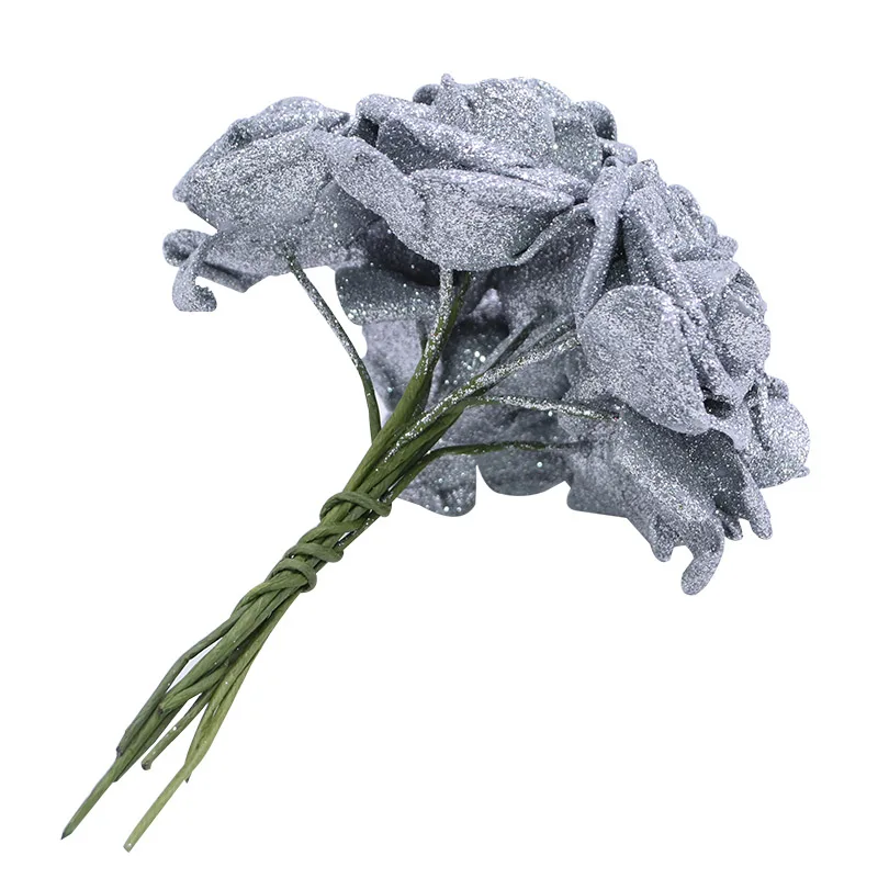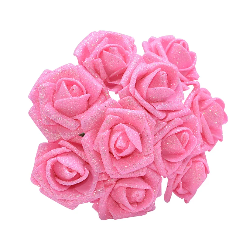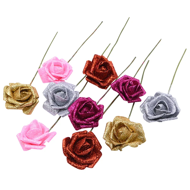 10 шт. 6,5 см с блестками Пена Розы Искусственные цветы букет невес...