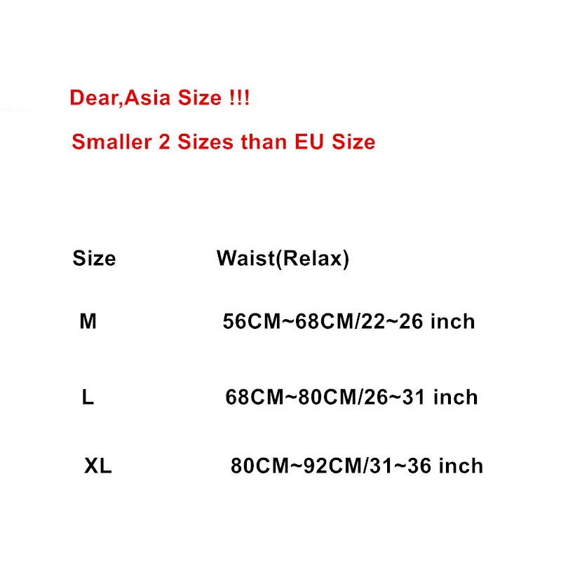 Азиатский размер, на 1-2 размера s меньше, чем европейский размерРазмер талии (Расслабьтесь)