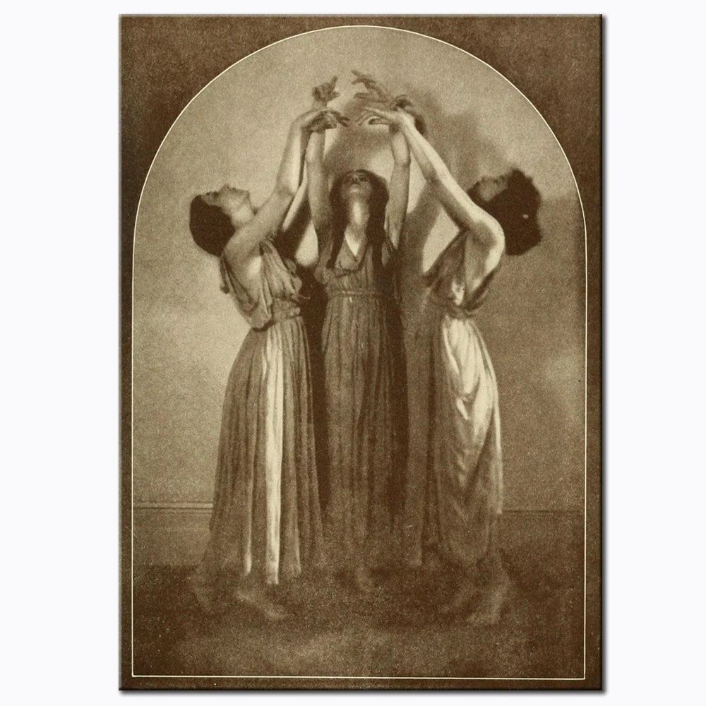 Картина на холсте с изображением трех ведьм в стиле ретро, настенное художественное изображение Anqitue, женские танцующие ведьмы, языческая волшебница, жрица, ведьма, ведьма