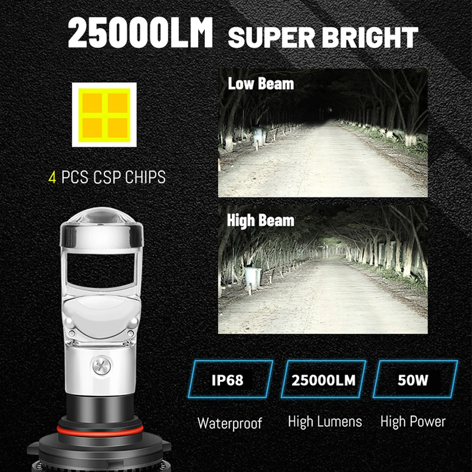 Фара H7, Би-светодиодная, 9005 лм, H4, H11, H8, H9, 9006, 6000, HB3...