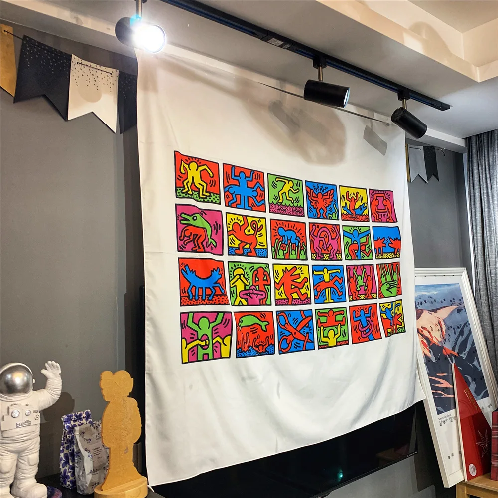 Декоративное вязаное одеяло с рисунком граффити, двойной чехол с кисточками, покрывало для дивана, подвесной гобелен, простыня