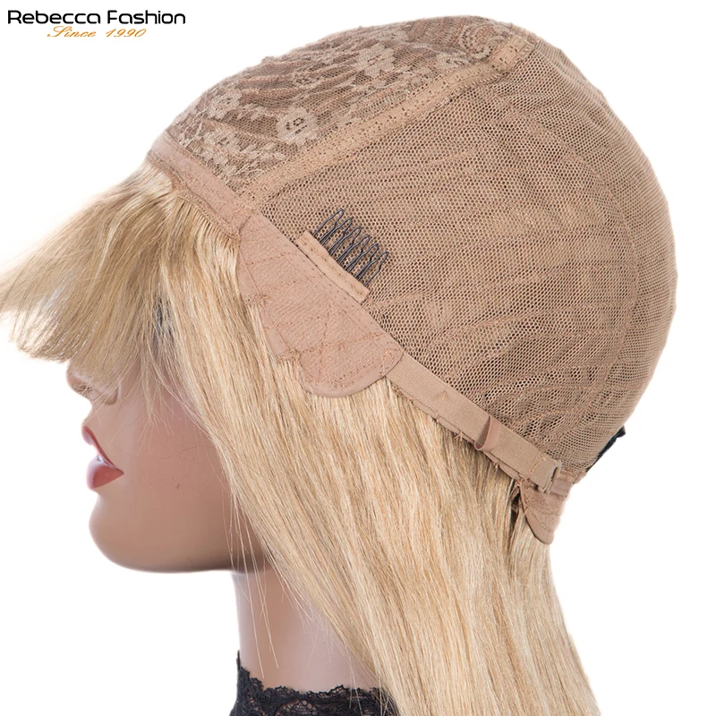 Парики Rebecca из прямых человеческих волос светлого цвета с челкой, бразильские парики без клея из человеческих волос Remy