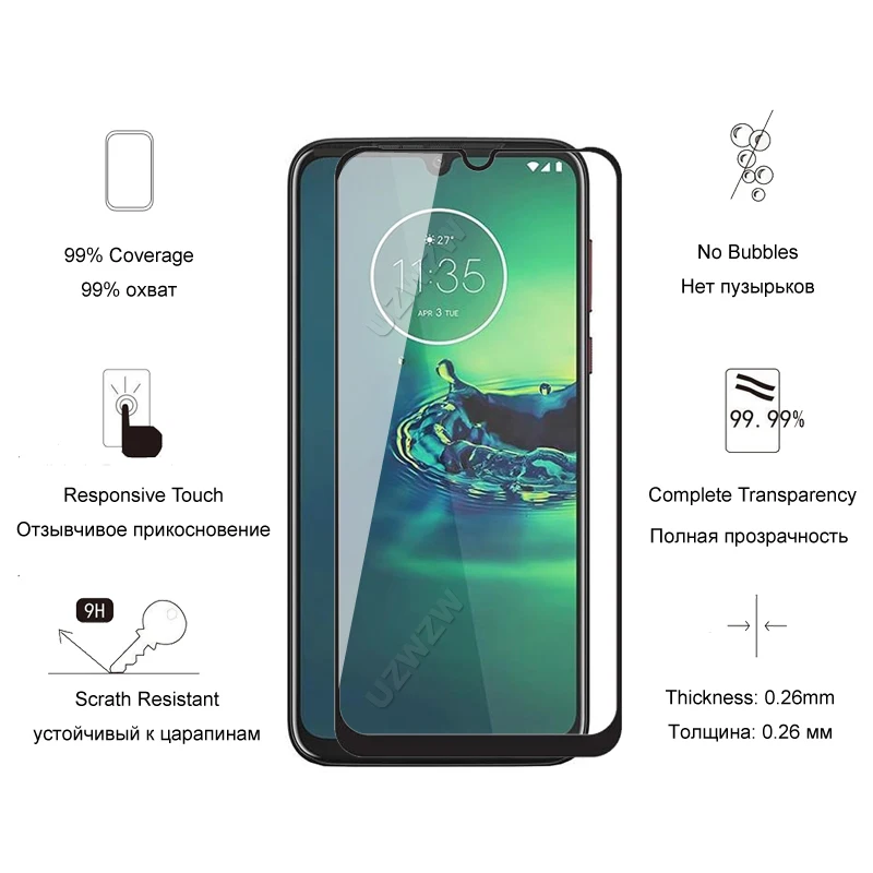 Полное покрытие стекло для Motorola Moto G8 Plus Защитная пленка для экрана закаленное стекло взрывозащищенное и пленка для объектива камеры