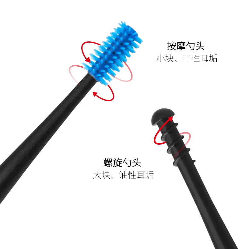 Двухсторонняя силиконовая ложка для чистки ушей, 3 цвета, 2 вида