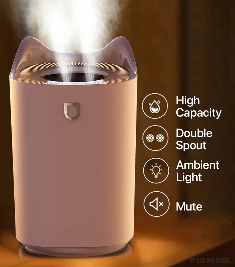 Увлажнитель воздуха с двойным соплом и светодиодной подсветкой, 3 л