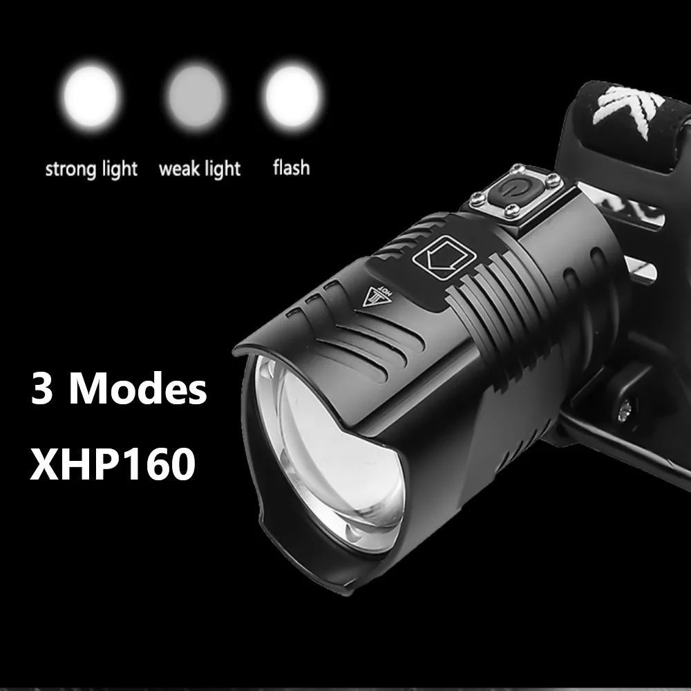 Налобный фонарь XHP160, светодиодный фонарик 18650, перезаряжаемый, Usb