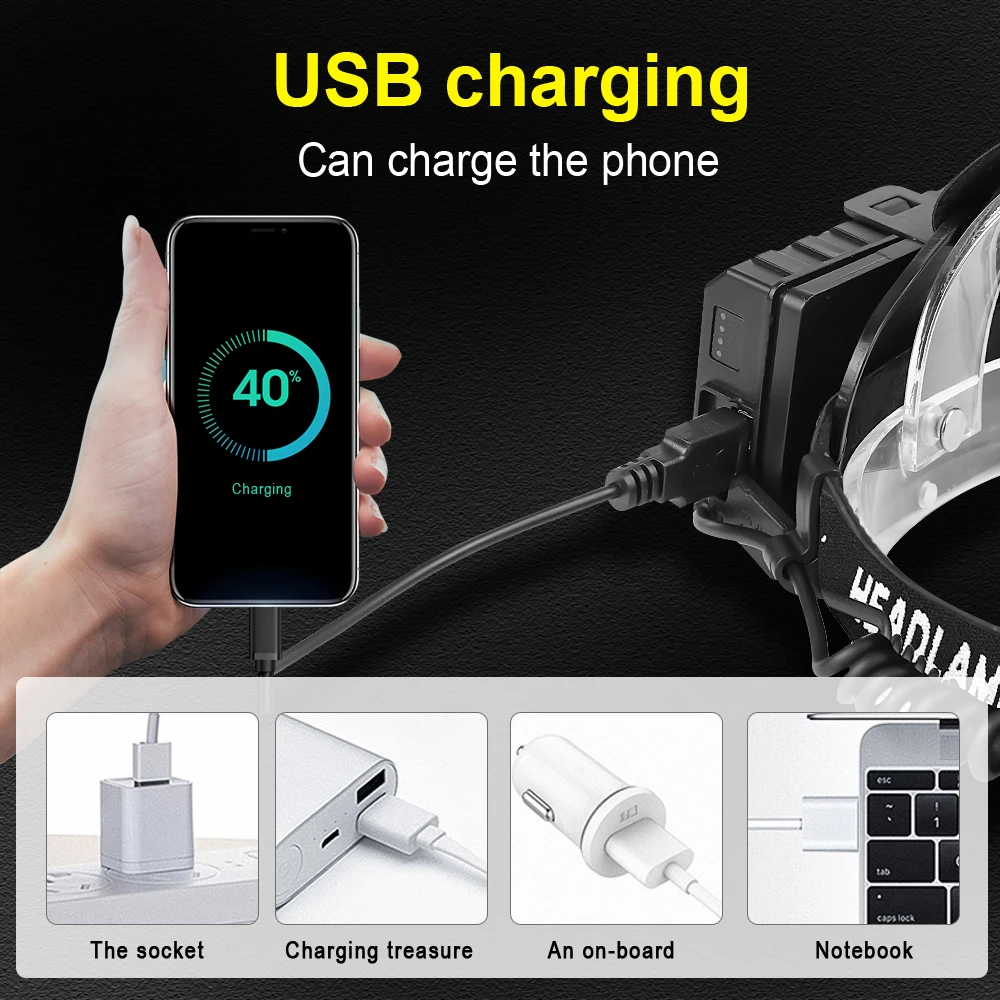 1. Используйте самый мощный фитиль XHP160, чтобы получить максимальную мощность2. Угол освещения головки можно отрегулировать на 100 градусов, а любой угол можно отрегулировать в соответствии с вашими потребностями3. Используйте зарядное устройство usb, поддерживает вход и выход, функцию внешнего аккумулятора4. Конструкция с телескопическим зумом, может переключаться между дальний или Ближний Фокус5. Водонепроницаемость IPX6, можно использовать в дождливые дни, но нельзя замачивать в воде6. На хвосте есть красный предупреждающий светильник, который можно включить в особое время7. Изготовлен из авиационного алюминиевого сплава, прочный, Жесткий анодированный военного класса HAIII.8. Оголовье можно растянуть и отрегулировать на в соответствии с размером головы. Легко надевается или снимается.9. Специально разработан для работы, правоохранительных органов, охоты, разведки, безопасности, рыбалки, поиска и спасения.