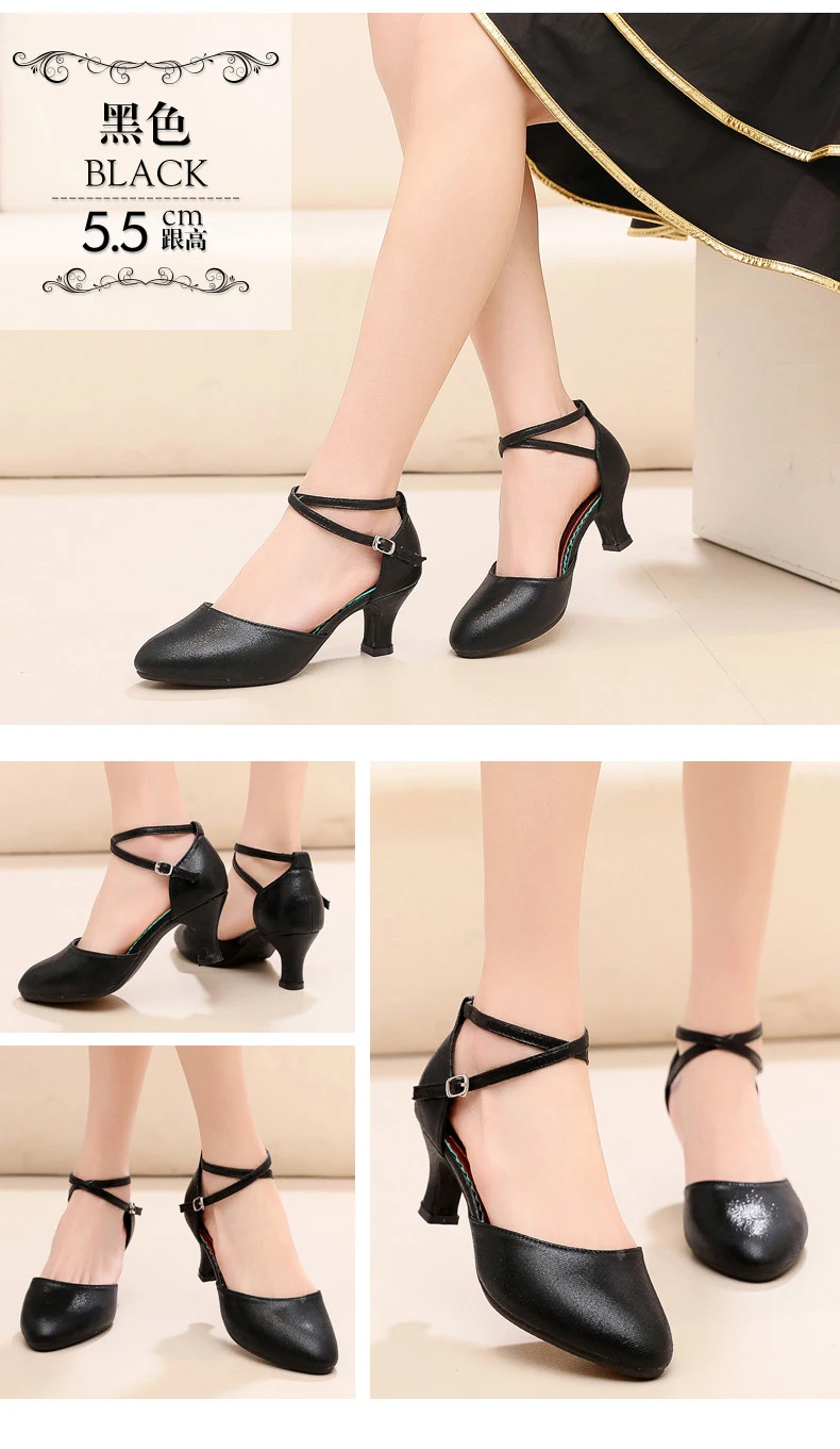 Женские туфли для латиноамериканских танцев, туфли для бальных танцев, танго, танго, туфли с закрытым носком и резиновой подошвой на высоком каблуке 5,5 см, танцевальные туфли для латиноамериканских танцев