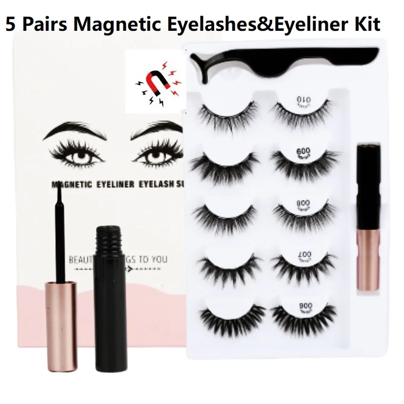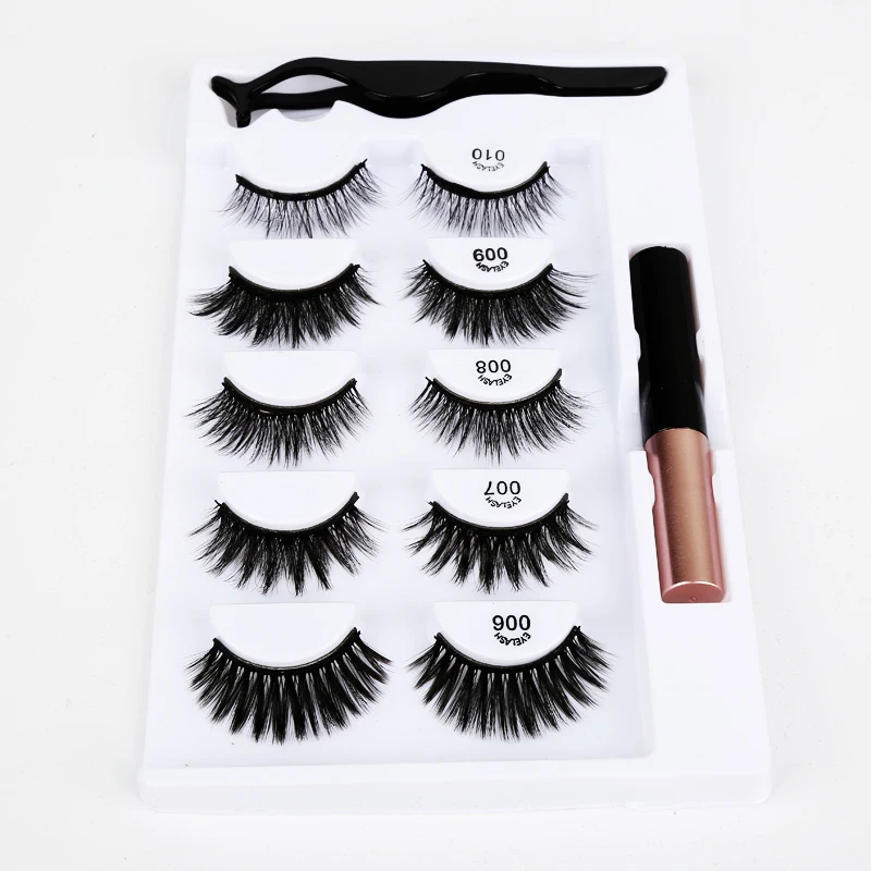 Магнитная подводка для глаз с эффектом 3D, водостойкая самоклеящаяся подводка для глаз, 5 пар толстых натуральных ресниц, инструмент для макияжа TSLM1