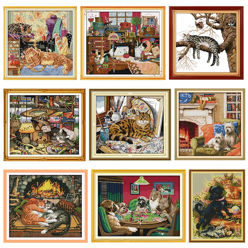 Наборы для вышивки крестиком, озорные коты узоров, напечатанные на ...