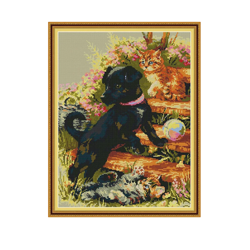 Набор для вышивки крестом Joy Sunday два щенка 14CT 11CT Счетный пр...