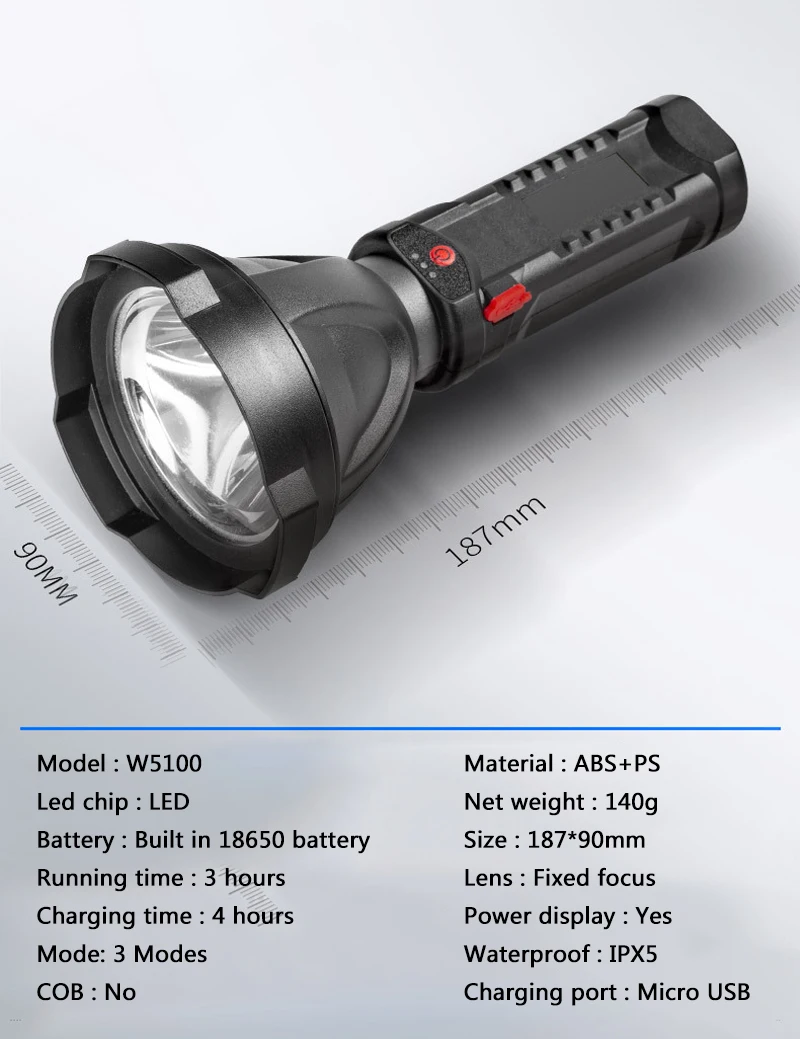 5. Режим: 3 режима (высокий-средний-Стробоскоп)